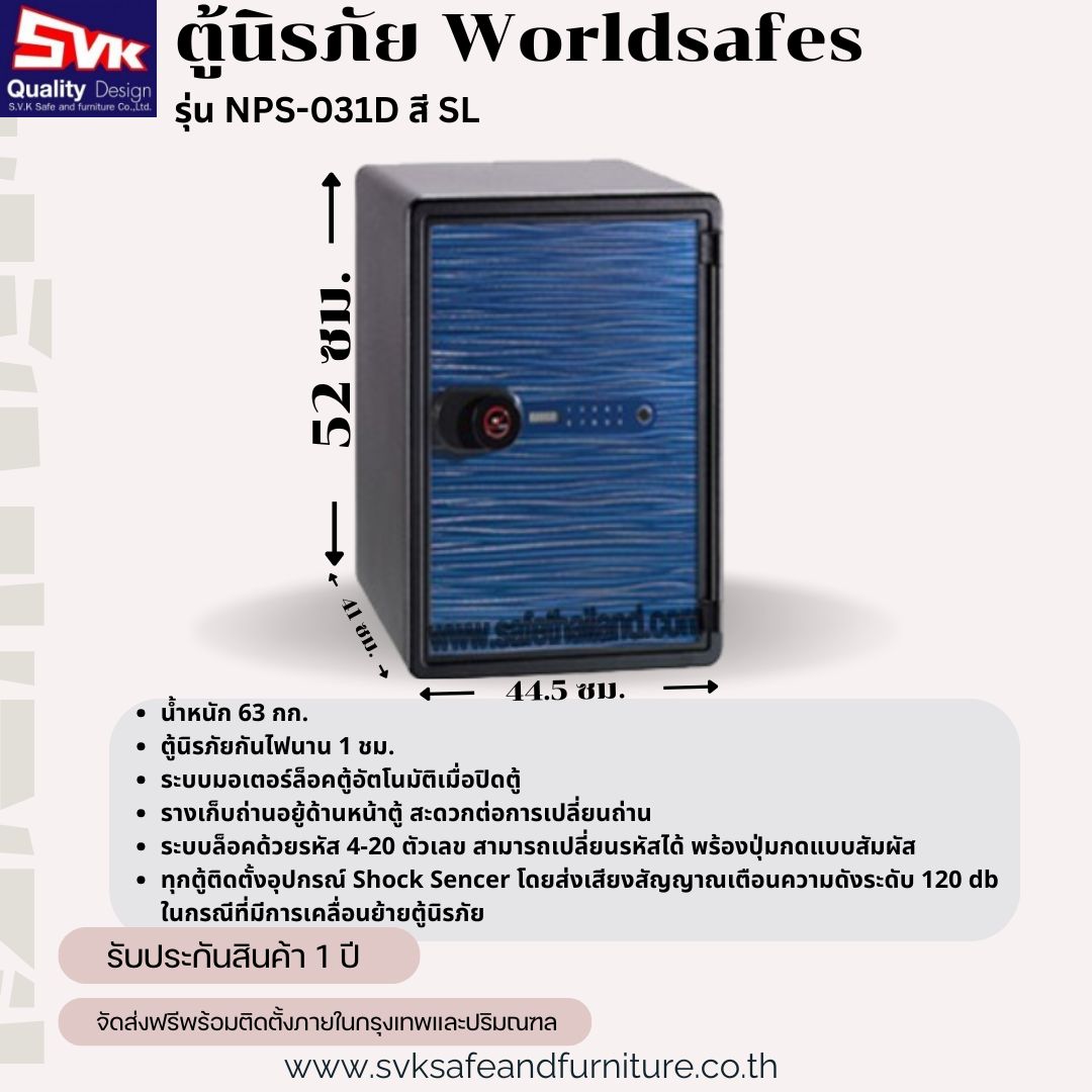 • ทุกตู้ติดตั้งอุปกรณ์ Shock Sencer โดยส่งเสียงสัญญาณเตือนความดังระดับ 120 db ในกรณีที่มีการเคลื่อนย้ายตู้นิรภัย