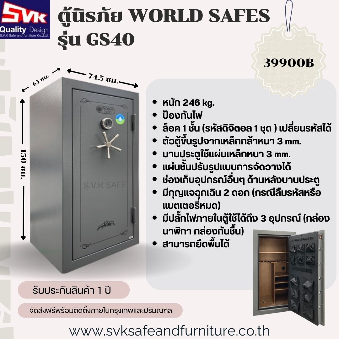 ตู้เซฟเก็บปืน สั้น ยาว Worldsafes GS40 ป้องกันน้ำ และ ไฟไหม้