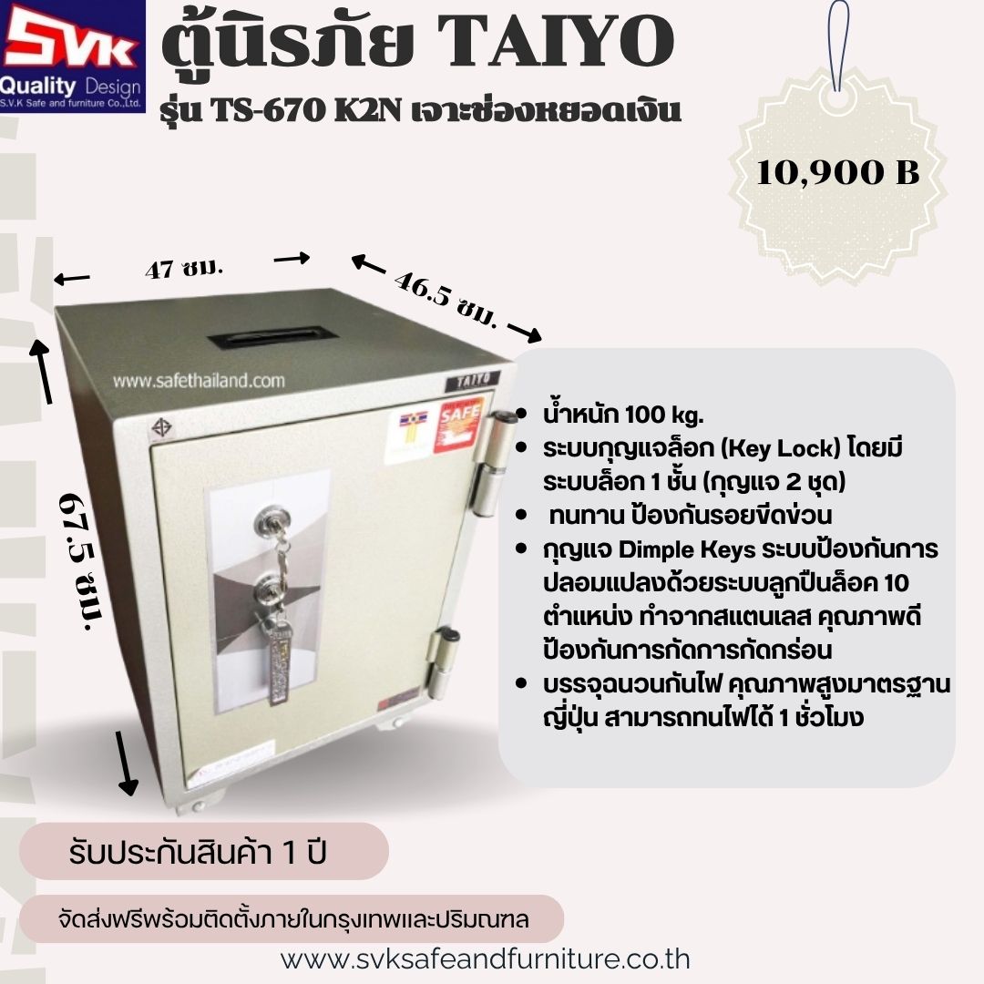 ตู้เซฟ TAIYO รุ่น TS-670 K2N เจาะช่องหยอดเงินด้านบน สำหรับใส่เงิน